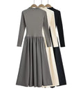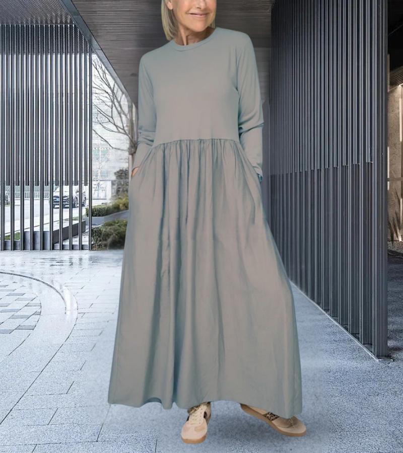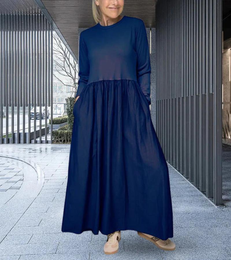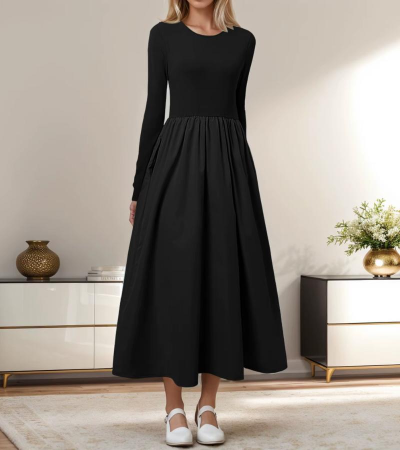 Scopri il perfetto equilibrio tra raffinatezza e praticità con il nostro abito midi. Il corpetto in maglia finemente lavorato avvolge delicatamente la silhouette, offrendo un comfort eccezionale. La gonna fluida a linea A cade con grazia, donando movimento e leggerezza ad ogni passo. Le maniche lunghe lo rendono ideale per le giornate più fresche, mentre le tasche laterali funzionali aggiungono un tocco di praticità senza compromettere lo stile.