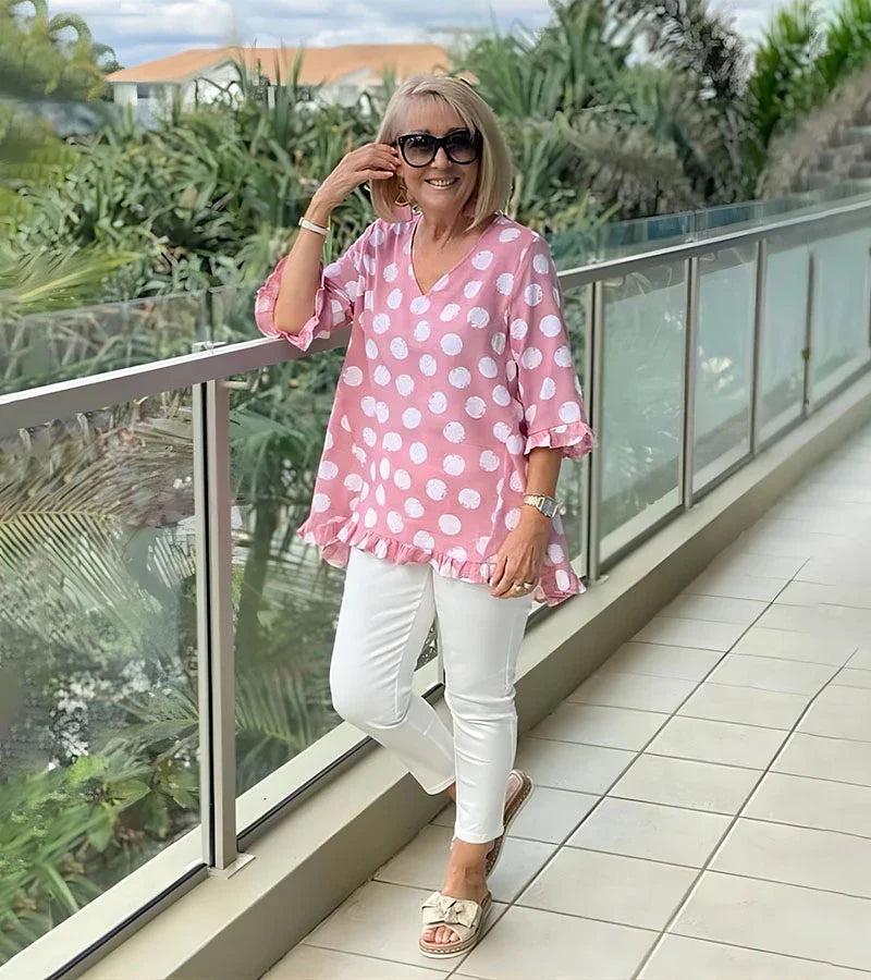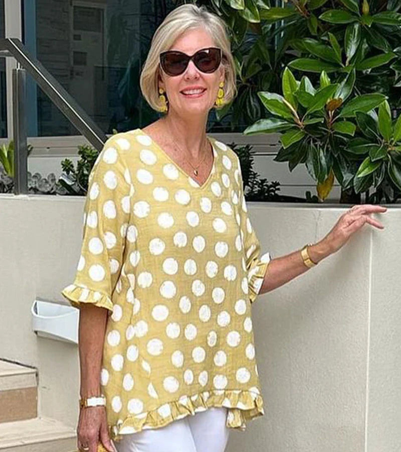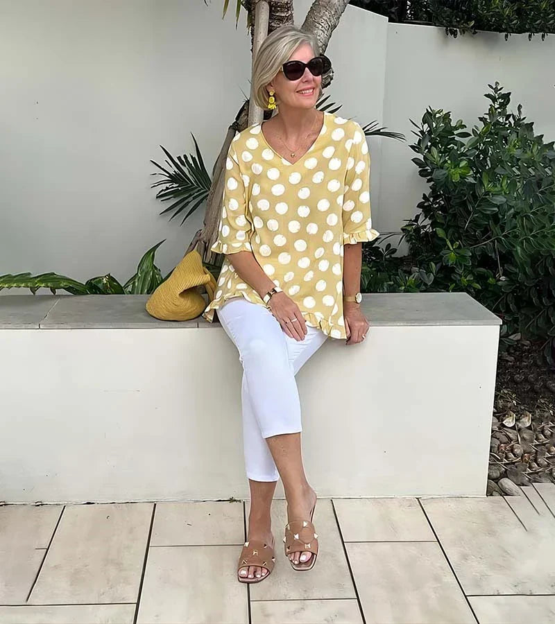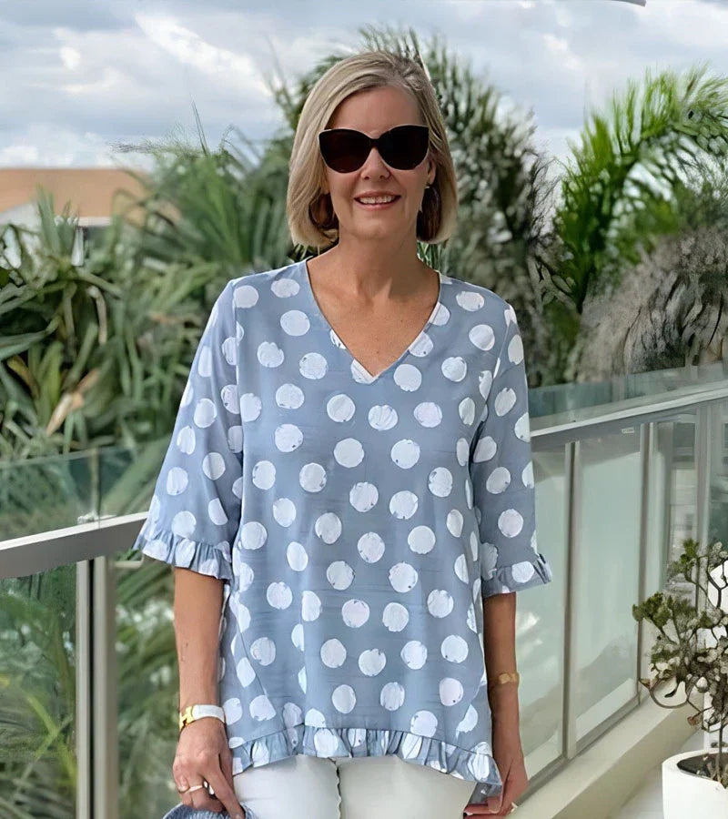 Femminile e lusinghiera: Volant sottili e scollo a V per un look chic e casual.
