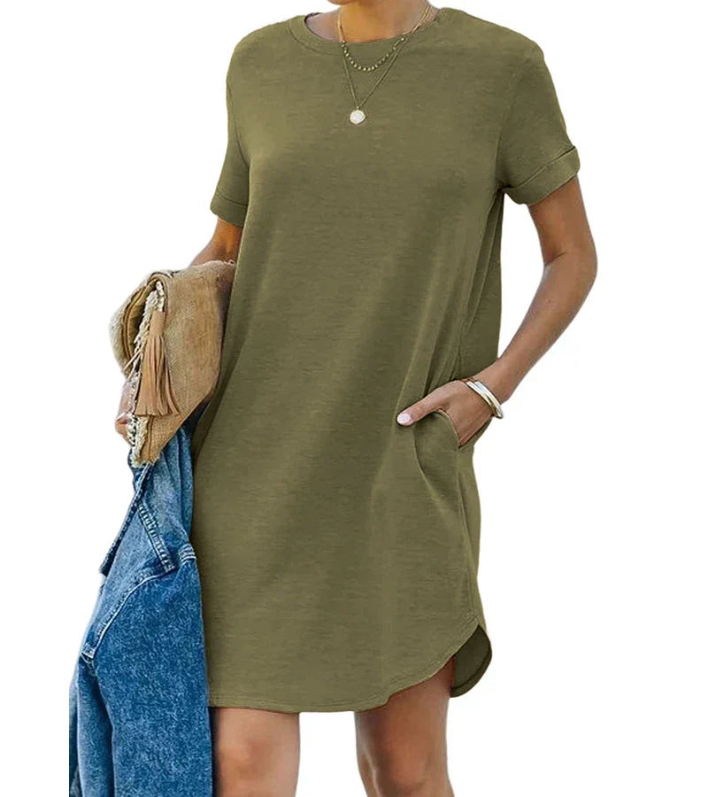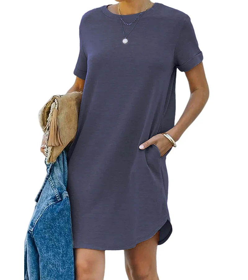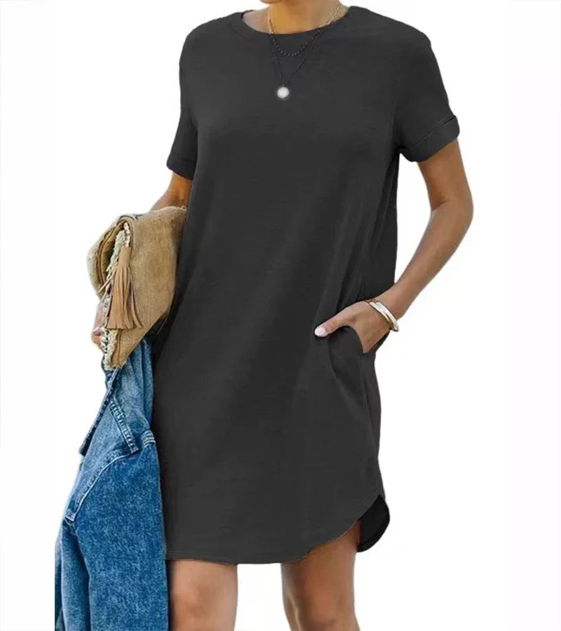 Cinzia | Abito T-shirt casual a maniche corte con tasca