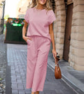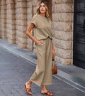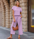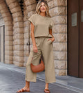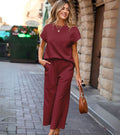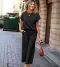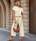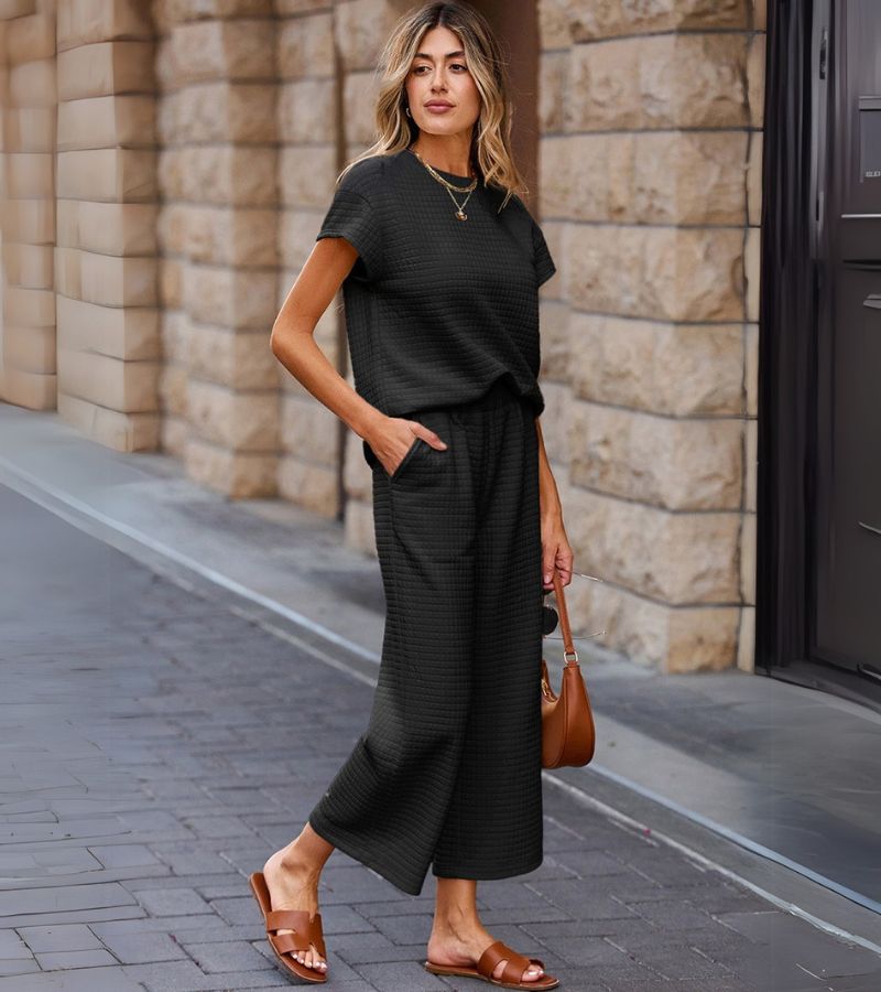 Cerchi il comfort senza rinunciare allo stile? Questo completo 2 pezzi è la scelta perfetta! Pensato per la donna moderna, combina un top a maniche corte con un pantalone a gamba larga in tessuto texturizzato. Morbido, leggero e versatile, è ideale per le giornate rilassate, il tempo libero o anche per lavorare da casa. Un look fresco, elegante e facile da indossare in ogni occasione!