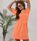 Comfort lussuoso da portare ovunque. Questo vestito a maniche corte è dotato di una cintura elastica nascosta che valorizza la tua silhouette, oltre a pratiche tasche frontali discrete.