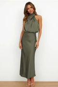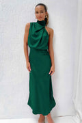 L’abito Diane è un capo elegante e raffinato, realizzato in seta di alta qualità che cattura magnificamente la luce. Con il suo corpetto drappeggiato a collo alto e la schiena scoperta, questo abito offre un look al tempo stesso sofisticato e sensuale, perfetto per l’estate. La gonna avvolge delicatamente la silhouette e si conclude con una lunghezza midi che valorizza la figura, ideale per matrimoni, cene o serate estive. Grazie alla qualità superiore e alla facilità di manutenzione del tessuto, l’abito rimane chic senza sforzo, anche dopo numerosi utilizzi.